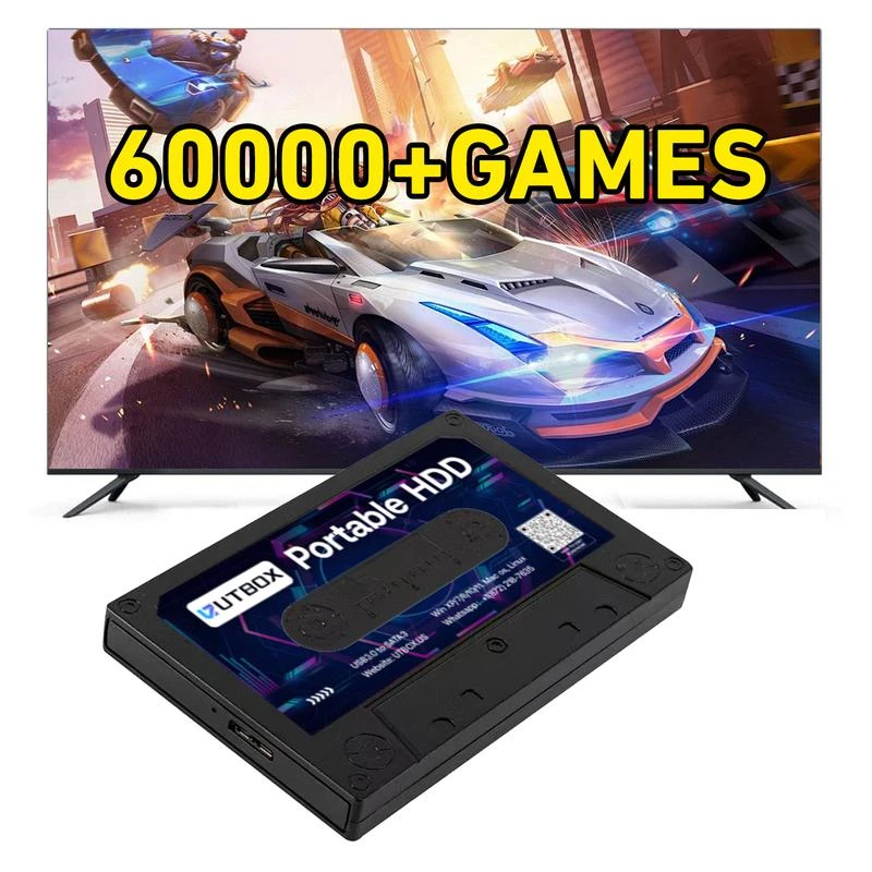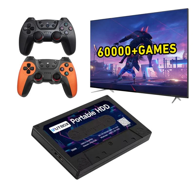 【New Upgrade】500GB Game Hard Drive Batocera Hard Driveplug,Contains 60,000 Games and play external mechanical mobilegame hard drive,Comes with Wireless Controller and Storage Bag Accessories Console Smartphone